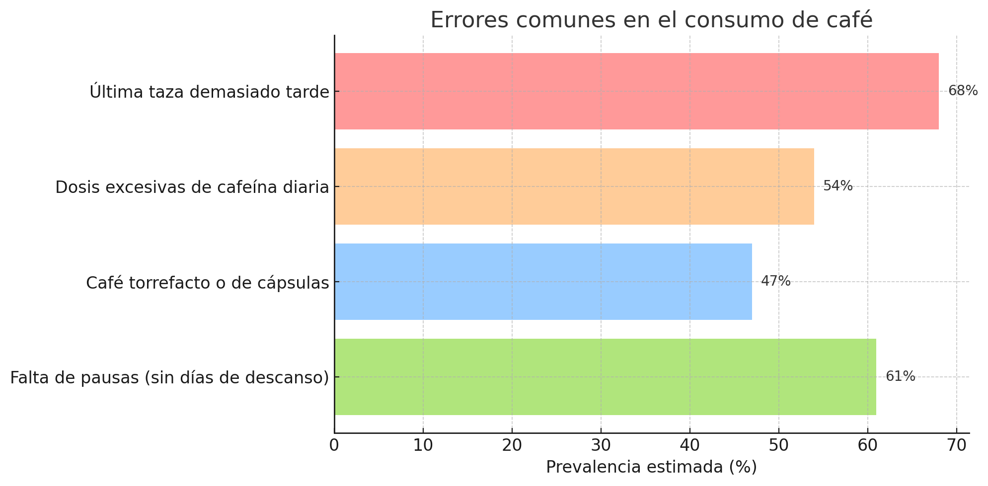 Arábica vs robusta: El café arábica tiene menos cafeína y más antioxidantes. El robusta tiene hasta el doble de cafeína, sabor más amargo y mayor carga estimulante. Si eres sensible o tomas varias tazas al día, prioriza arábica.